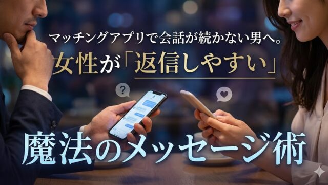 マッチング後の初回メッセージ、何を送るか悩みすぎていませんか?そのまま使える「コピペ用例文」と、返信率を劇的に高める3つの鉄則を公開。挨拶だけの短文や長文自分語りがなぜNGなのかを解説し、確実に返信をもらうための論理的戦略を伝授します。