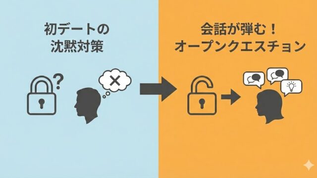 初デートの沈黙が怖い原因は、会話が「YES/NO」で終わる質問をしているからです。相手が自然と喋りだす「オープンクエスチョン」の技術とは?無理に面白く話そうとしなくても、聞き役に回るだけで場が盛り上がる会話のロジックを解説します。